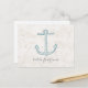 Perfect for a nautical themed wedding is this Rustic Anchor Wedding Table Number Postcard with a dark blue boat anchor on a light beige marble look background. This classic and simple table card is easy to customise with your wedding details. Find more personalisation options by clicking Customise.