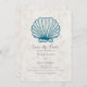 Perfect for a nautical themed wedding is this Rustic Seashell Wedding Save the Date Announcement with a dark blue seashell on a light beige marble look background. This classic and simple beach save the date invite is easy to customise with your wedding details. Find more personalisation options by clicking Customise.