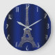 Royal Blue & Silver Eiffel Tower Paris Modern Glam Large Clock