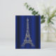 Royal Blue Silver Eiffel Tower Paris Save the Date Announcement Postcard