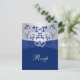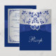 Royal Blue, Silver Floral, Hearts Wedding RSVP Card