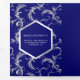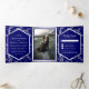 Royal Blue Silver Flourish Swirl Wedding Photo Tri-Fold Invitation