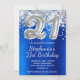 Royal Blue Silver Glitter Balloon 21st Birthday Invitation