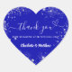 A royal blue background. Decorated with faux silver glitter, sparkles and a heart. Personalise and add your names. With the text: Thank you for sharing our special day.