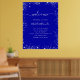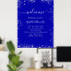 A royal blue background, decorated with faux silver glitter sparkles. Personalise and add your names and the wedding program.