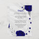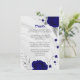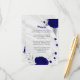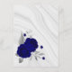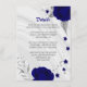 romantic royal blue flowers and silver grey leaves against marble background details enclosure card.