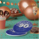 The top half of this chic design features a pattern of sparkly silver leopard spots on a royal blue background, with "90" in large silver balloon numbers. Add the guest of honour's name in elegant silver grey handwriting script on a royal blue background, with the words "90th birthday party in sans serif font below.