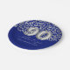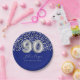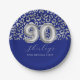Royal Blue Silver Leopard Print 90th Birthday Paper Plate