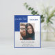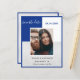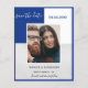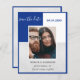 A modern wedding Save the Date photo card. Royal blue, white and faux silver metallic looking colour blocks. Personalise and add your photo and wedding details.