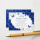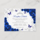 Royal blue silver Quinceanera reception details enclosure cards. Features, script font, silver butterflies, watercolor roses and tiara. Perfect for an elegant princess style glam celebration. Personalize with your own details.