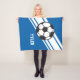 A sporty design with a soccer ball against white diagonal stripes and royal blue background. Personalise this cosy fleece blanket with a name or short phrase. The collegiate style font gives it an athletic sports feel. This blanket is great for soccer fans, players and coaches. Cosy up on the sofa or at the stadium with this blanket while you watch the game. They also make a great present for Christmas, birthday and other holidays. This design available in a variety of colours. If you don't find what you're looking for just message me with your request.