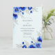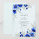 This design showcases vibrant royal blue anemones paired with delicate silver line-art foliage. The cool-toned palette creates a sophisticated atmosphere perfect for a winter or formal event. Delicate watercolor washes and detailed sketches offer a blend of modern and classic styles.