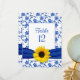 The table number on this sunflower royal blue and white damask wedding or special occasion table number card is fully customisable. To change the table number use the personalise option. For these, you must change the table number, change the quantity to 1, and then add it to your cart and repeat the process for all the table cards you need. For more extensive changes to the card including changes to the font, font colour, font size, or text placement, use the customise option. This is a sophisticated and elegant table card for a wedding or other special occasion in the summer or fall. Classic royal blue, yellow, and white is always stylish and sophisticated.