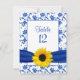 Royal Blue Sunflower Damask Wedding Table Card