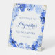 Royal Blue Watercolor Floral Gold Quinceanera Pedestal Sign