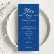 Elevate your dining experience with our minimalist royal blue wedding menu. Featuring modern calligraphy script and adorned with a radiant gold rope heart, it adds a touch of elegance to your reception. Join us for an exquisite culinary journey, where every detail reflects the beauty of your love story.