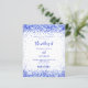 A chic white background, decorated with royal blue confetti. Personalise and add your names and details.