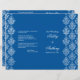 The text and background colour on this royal blue and white damask wedding program is fully customisable. It is intended to be folded down the middle when you receive it. To change the text, use the personalise option. For more extensive text changes, such as changes to the background colour, font, font colour, font size, or text placement, use the customise option. Also, once your text is finalised, if you need to move it around a bit, you can do that using the customise it option. This blue and white damask special occasion program is currently customised as a wedding program, but it would work well as a program for a birthday celebration (sweet 16), wedding shower, or possibly high school graduation celebration as well. Really, this would even make a really nice church bulletin with changes to the text. Let your imagination lead you.