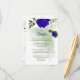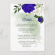 romantic royal blue and white flowers and green leaves botanical details enclosure card.