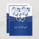 Royal Blue, White Floral Joined Hearts RSVP Card