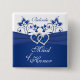 This personalised royal blue and white floral Maid of Honour button with a PRINTED royal blue ribbon and a pair of PRINTED FAUX glitter and diamond jewel joined hearts brooch on it that matches the wedding invitation shown below. The text is customisable and so is the shape and size of the button. ****PLEASE note that if you change the shape to the that text may get cut off. It will print as it appears on your monitor, and you must allow adequate space around the edges, so do NOT run text right up to the edge. If you need anything changed, please email niteowlstudio@gmail.com.