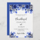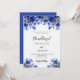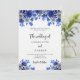 A white background, decorated with blue and white flowers. Personalise and add your names and details.