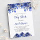 Royal blue white flowers boy luxury baby shower invitation