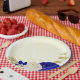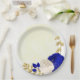 royal blue & white flowers gold paper plate