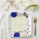 Romantic royal blue & white flowers with gold leaves botanical wedding paper plate.