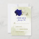 royal blue white flowers green leaves RSVP card