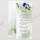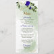 beautiful royal blue and white flowers and green leaves elegant botanical wedding menu.