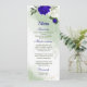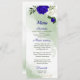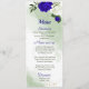 beautiful royal blue and white flowers and green leaves elegant botanical wedding menu.