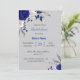 royal blue white flowers grey leaves bridal shower invitation