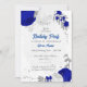 royal blue &white flowers silver birthday invitation
