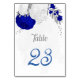 royal blue &white flowers silver botanical wedding table number