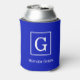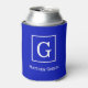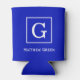 Royal Blue White Framed Initial Monogram Can Cooler