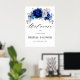 Elegant royal blue white silver theme wedding welcome poster featuring elegant bouquet of royal blue, Navy, silver, pure white color rose flowers buds and sage green eucalyptus leaves. Please contact me for any help in customization or if you need any other product with this design.