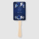 Royal Blue White Silver Floral Wedding Program Hand Fan