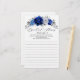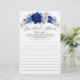 Elegant royal blue white silver theme who am I bridal shower game featuring elegant bouquet of royal blue, Navy, silver, pure white colour rose flowers buds and sage green eucalyptus leaves. Please contact me for any help in customisation or if you need any other product with this design.