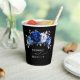 Elegant royal blue white silver theme wedding paper cup featuring elegant bouquet of royal blue, Navy, silver, pure white colour rose flowers buds and sage green eucalyptus leaves. Please contact me for any help in customisation or if you need any other product with this design.