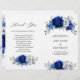 Elegant royal blue white silver theme wedding program featuring elegant bouquet of royal blue, Navy, silver, pure white colour rose flowers buds and sage green eucalyptus leaves. Please contact me for any help in customisation or if you need any other product with this design.