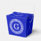 Royal Blue Wt Greek Key Rnd Frame Initial Monogram Favour Box