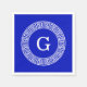 Royal Blue Wt Greek Key Rnd Frame Initial Monogram Napkin