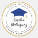 Royal blue and yellow graduation cap sticker. Versatile to use for envelope seals or favour stickers. The colours of the graduation cap and outer border can be changed using the Edit Tool. Fonts/curve can also be adjusted. Personalise with your class year, name, and school. © Kimbellished, LLC