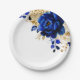 Royal Blue Yellow Gold Metallic Floral Wedding Paper Plate