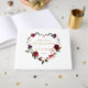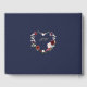 Modern design featuring burgundy, blush watercolour flowers wreath in a heart shape, floral divider; on the back heart floral wreath and initials on navy blue background. Use Personalise tool to add your info. Matching items could be found in my Burgundy Blush Flowers Collection.
