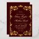 Modern stylish dark wedding card burgundy with gold dust on with a gold ink pour effect and modern calligraphy. Classy and elegant, luxury and modern invitation.