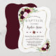 Royal Burgundy Marsala Floral Gold Girl Baptism Invitation