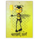 Bold, fierce, and buzzing with attitude, this vibrant artwork showcases a stylized Queen Bee character standing confidently against a backdrop of honeycomb patterns. With sharp green eyes, a crown of leafy curls, and a honey dipper staff in hand, she exudes power and sass. Her striking black and yellow stripes are accentuated by translucent wings and confident posture, symbolizing leadership and dominance in the hive.