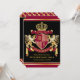 Create your very own aristocratic Coat of Arms, Emblem, Insignia or Family Crest with this beautiful, classic escutcheon or shield design. Crimson red patterns decorate a shield topped with golden crown and flanked by medieval heraldic lion or griffin. Replace the sample text with your own for a personalized design. A gender neutral design that will work for families, groups, couples or individuals. Makes a wonderful template for Wedding, Anniversary, Birthday, Retirement, Promotion, Father’s Day, Bachelor Party, Wedding Shower, Graduation, International Heraldry Day, Medieval or Fantasy-themed parties and other special occasions.